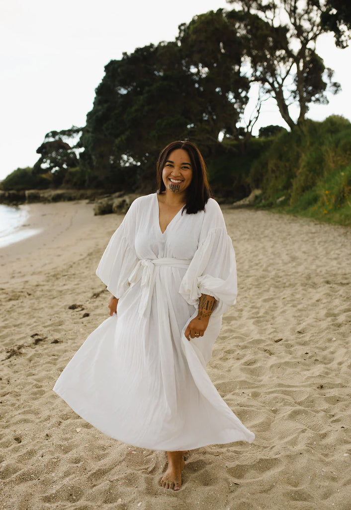 Meet Monty, a simple top which is a great addition to any wardrobe. It features floaty sleeves that feel soft and easy, or elastic ones if you like a bit more shape. It ties in at the waist with a wide tie that can be worn in a range of ways to create different looks.