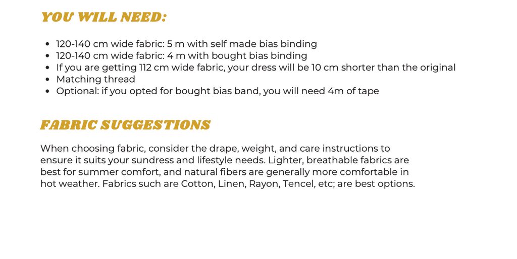 Fabric requirement: Woven fabrics (ideally floaty) 5m @140cm wide